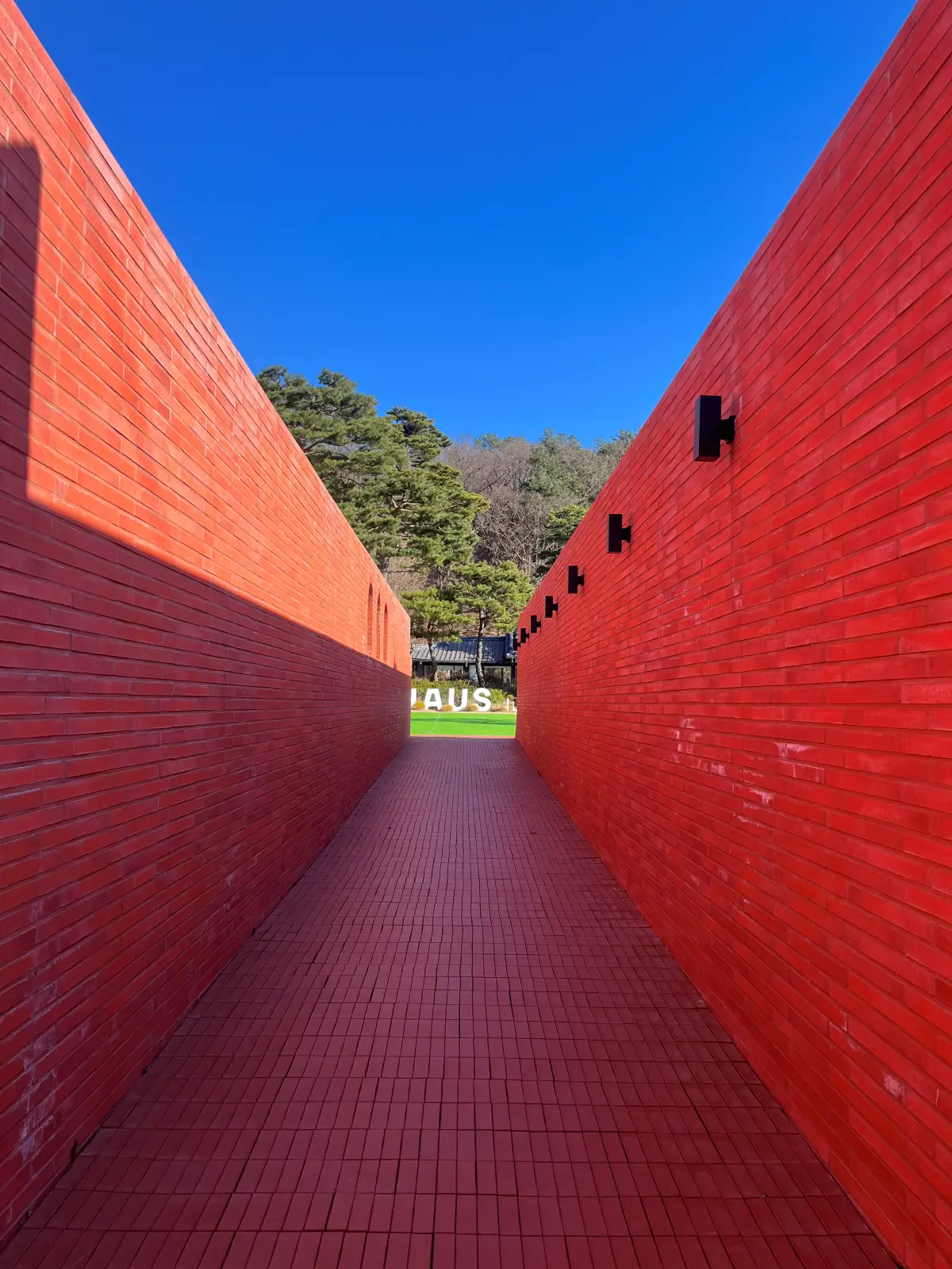통로로 들어가면 넓은 정원과 건물이 있었습니다.