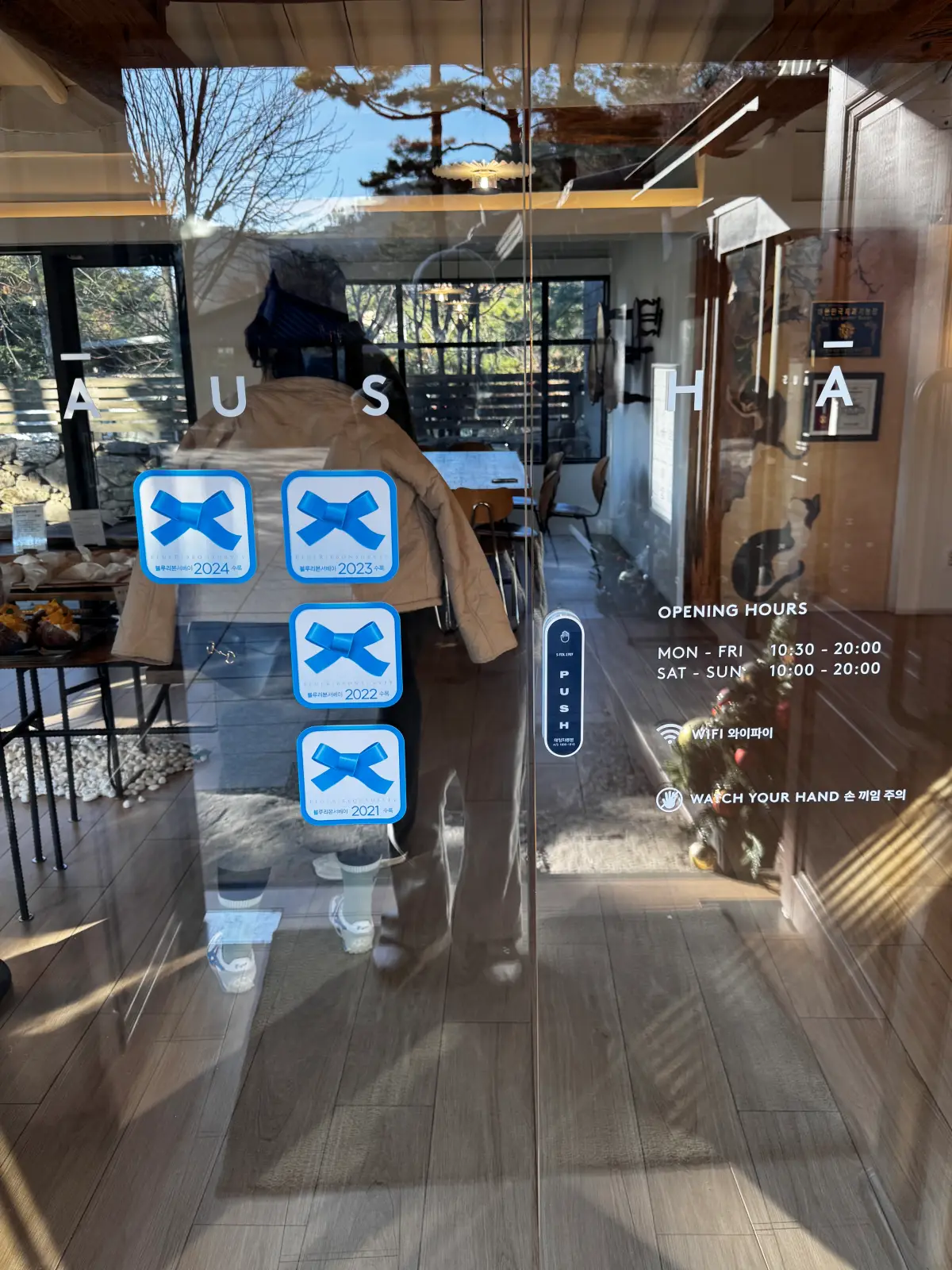 매장 입구에 블루리본이 붙어있는 것을 볼 수 있습니다.