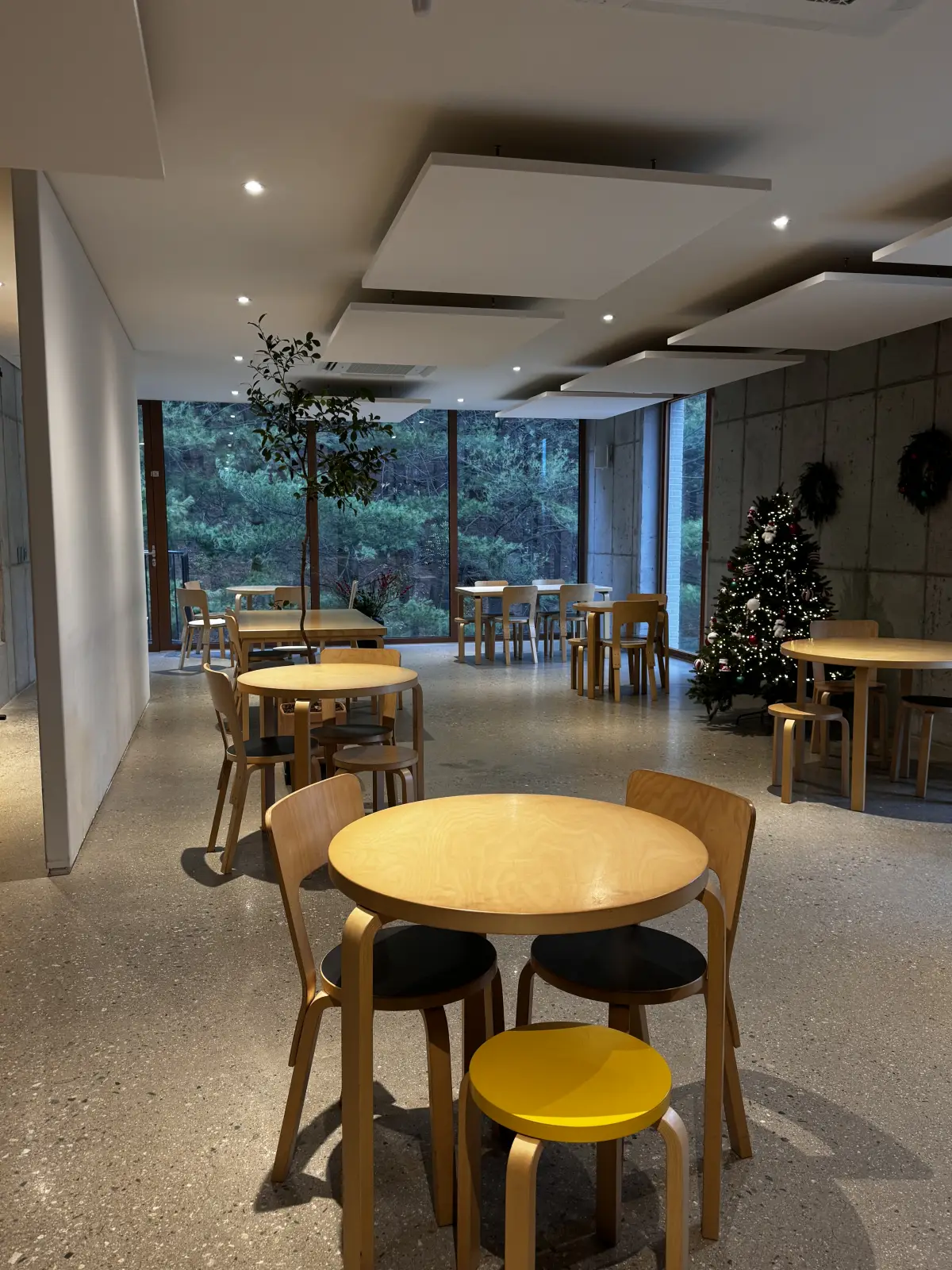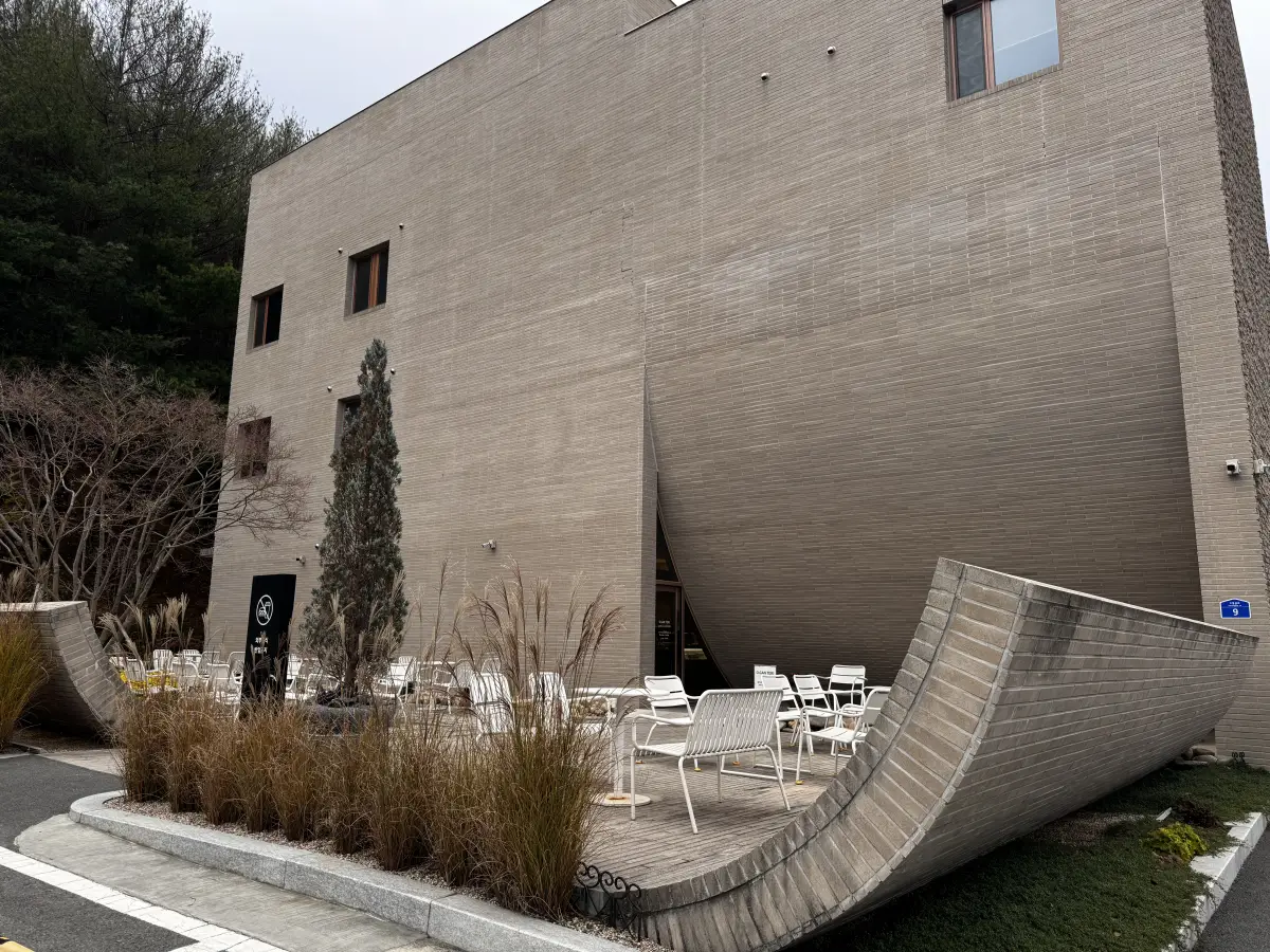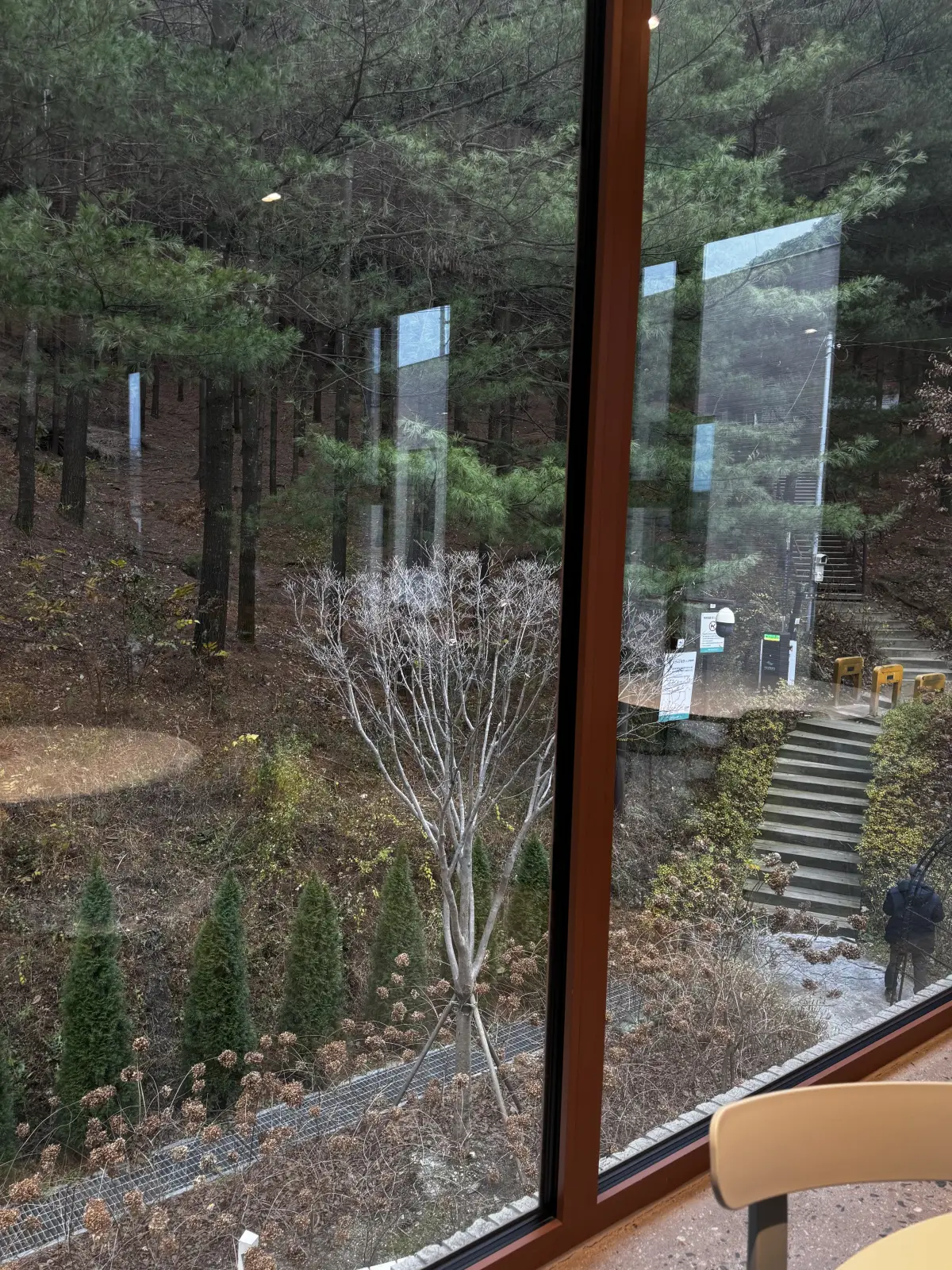 1층은 독특한 건축물의 형태가 돋보였고, 좌석에 앉았을 때 바깥으로 보이는 통창 뷰가 인상 깊었습니다.
