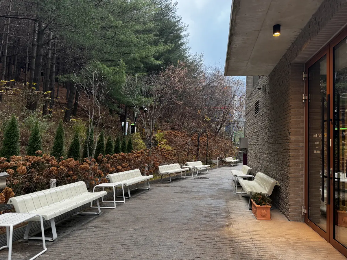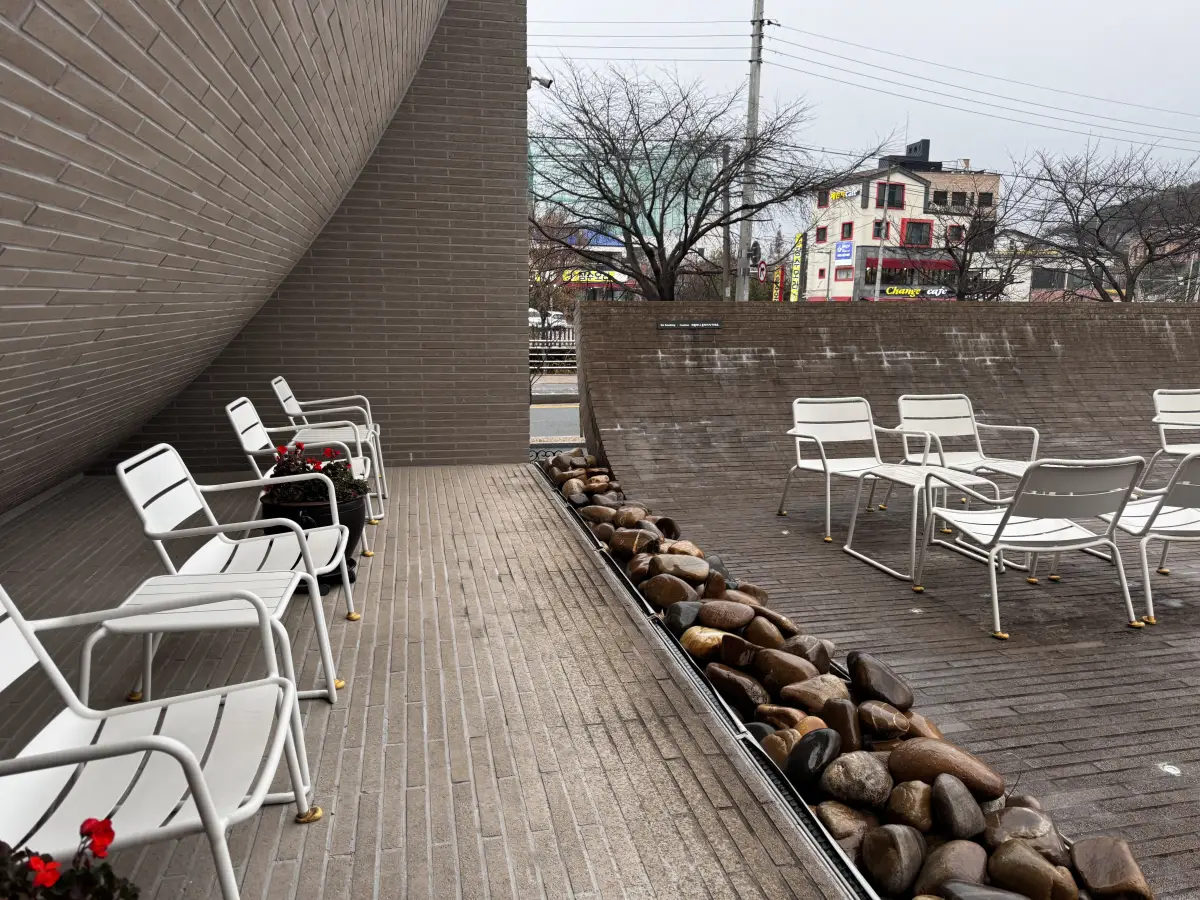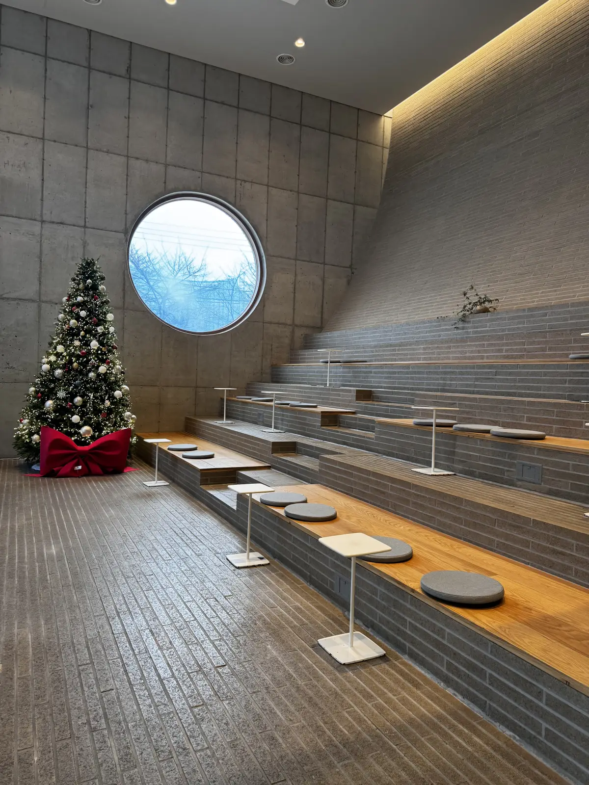 1층은 독특한 건축물의 형태가 돋보였고, 좌석에 앉았을 때 바깥으로 보이는 통창 뷰가 인상 깊었습니다.