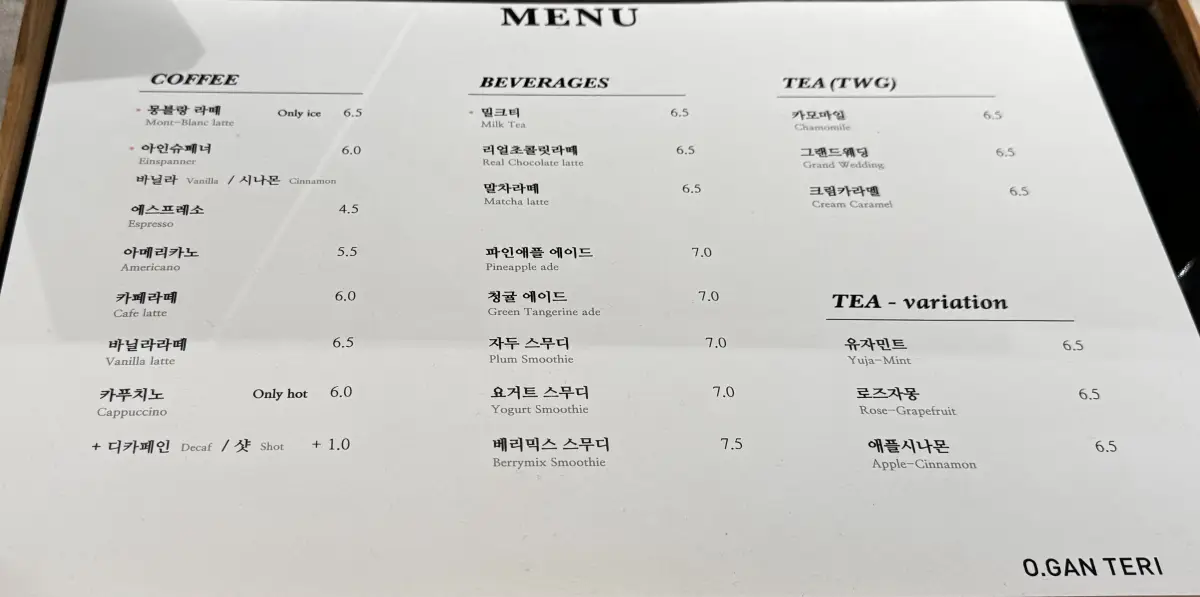 카페 입구에 이렇게 안내되어 있어 알 수 있었습니다.