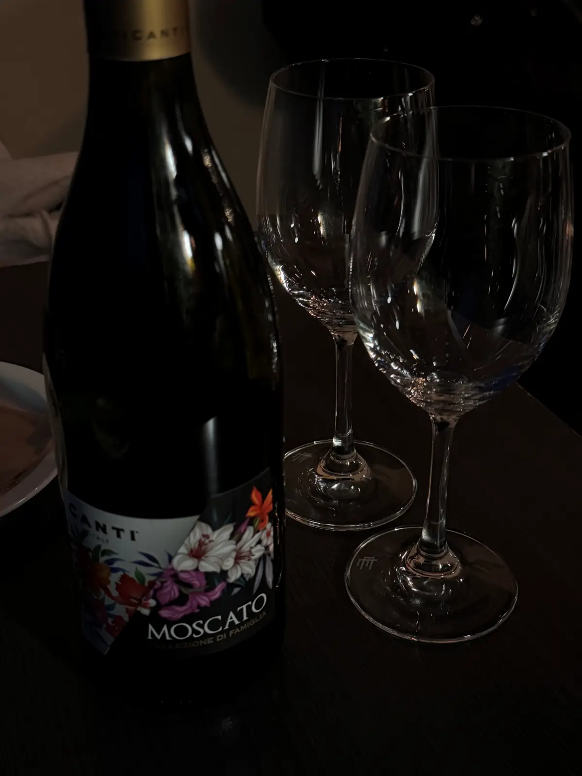 달콤한 화이트 스파클링 모스카토 와인을 주문했습니다.