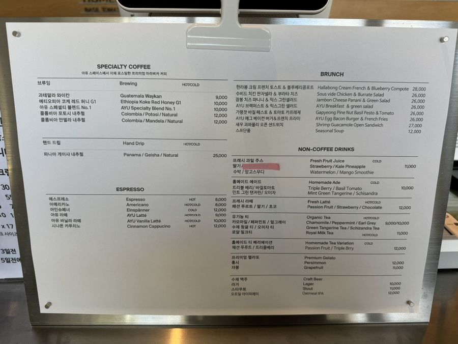 메뉴판을 보면 브런치 메뉴들도 준비되어 있습니다.