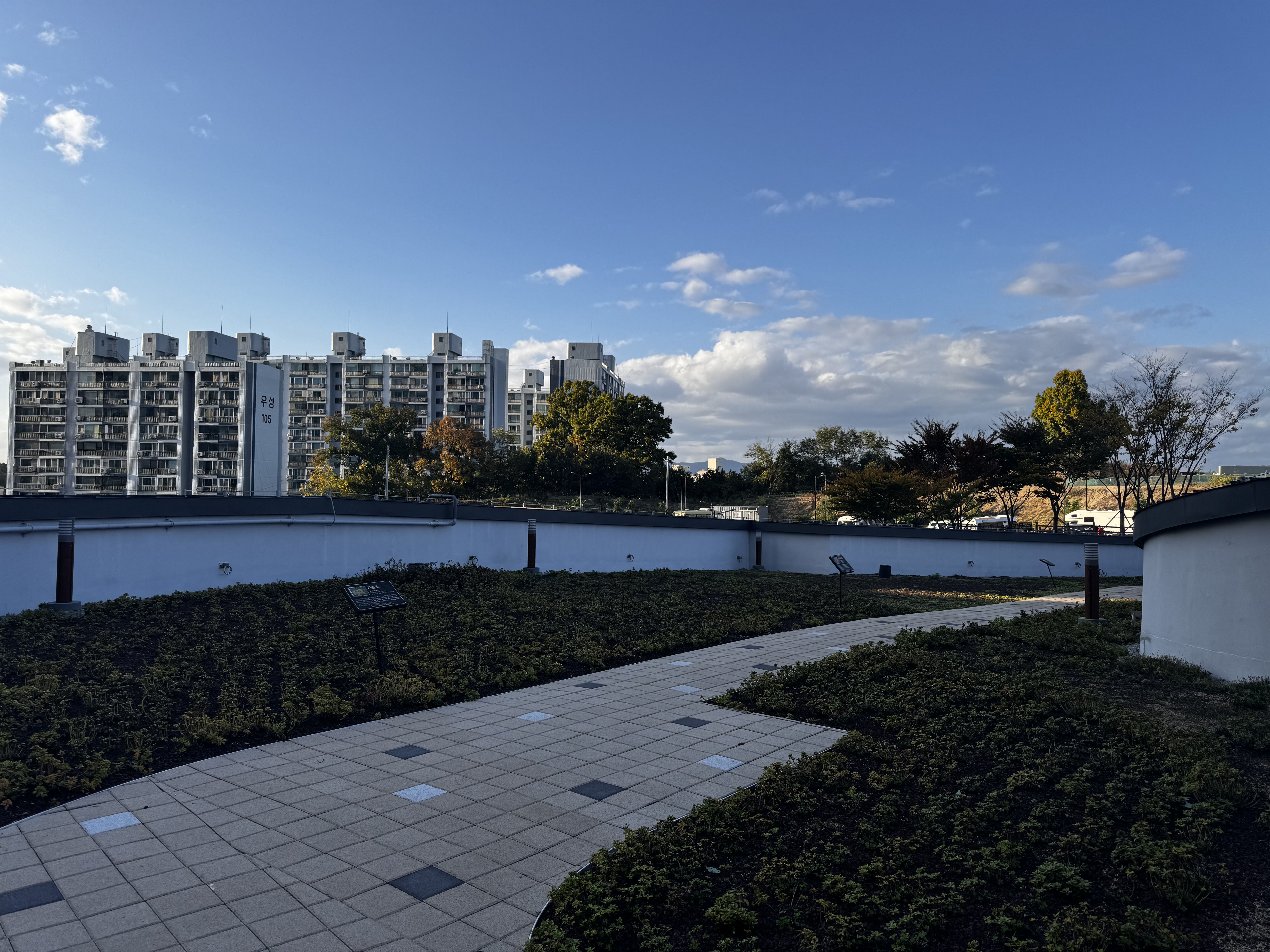 이곳으로 나가면 건물 주변을 산책할 수 있는