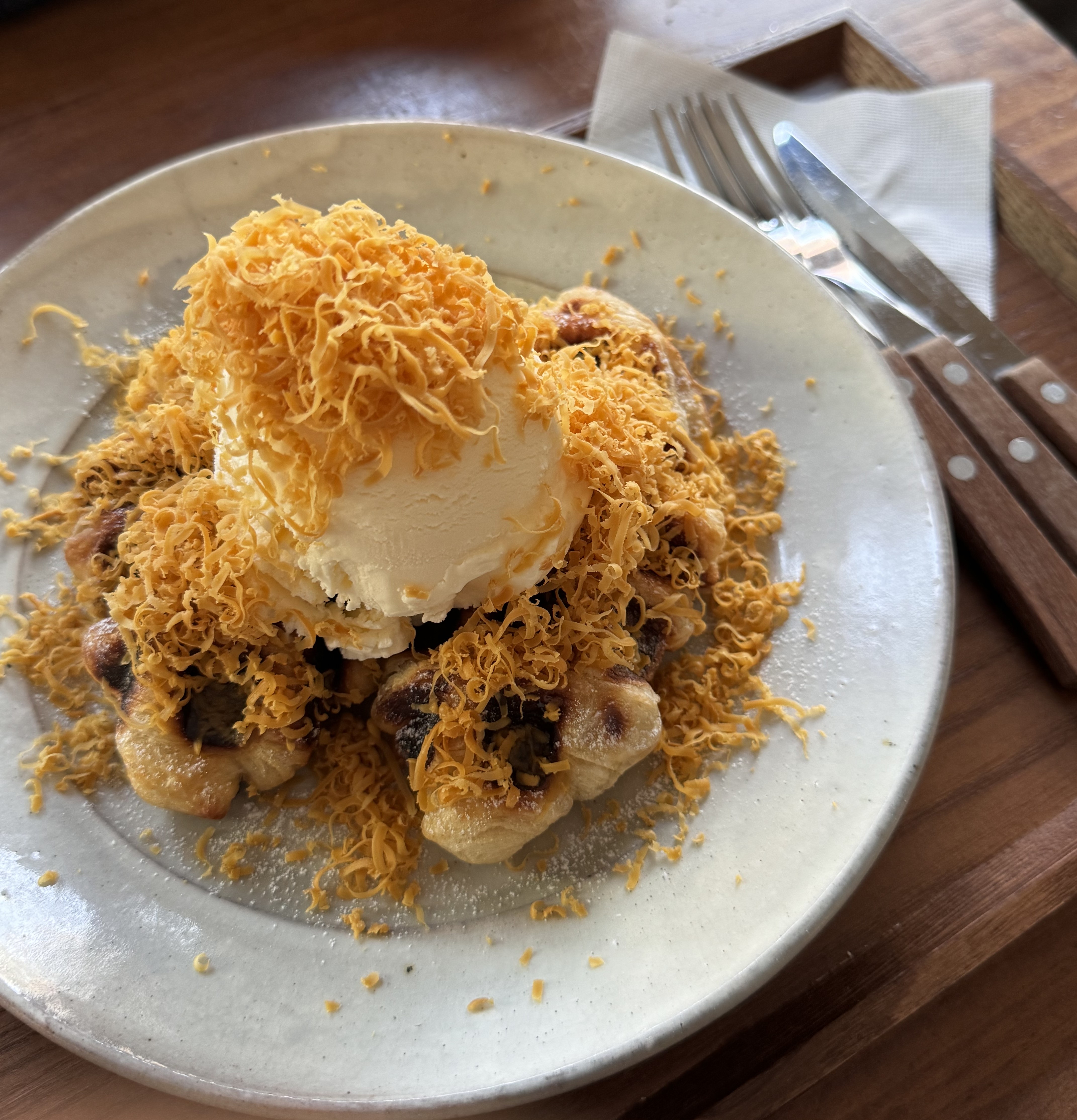 저는 라떼 2잔, 브라운 치즈 크로플에 아이스크림을 추가하였고